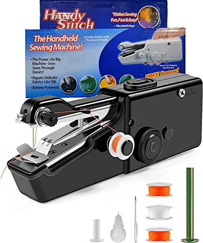 ✓ 【Compacto y ligero】: puede utilizar la mini máquina de coser para coser cortinas colgantes, tapices, etc. Ideal para reparaciones y cambios en el sitio. Requiere 4 pilas AA o fuente de alimentación DC 6 V 600 mA (no incluida), 20 cm (L ) x 7,5 cm (alto) x 5 cm (ancho) Nota: el grosor de costura adecuado no debe exceder de 1,8 mm..